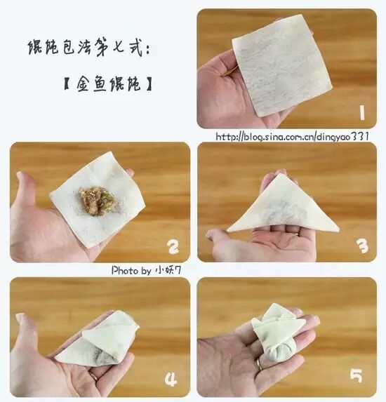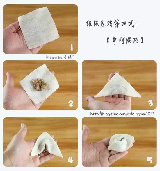 A-A+ 馄饨怎么包?图解馄饨的10种经典包法 2014年11月03日 生活常识 暂无评论 阅读 1 次 馄饨最早起源于中国北方,不过却在南方被发扬光大。广东叫云吞,四川叫抄手,江西称清汤,湖北叫包面。关于馄饨的包法也是多种多样,我们选取了较为常见的10种方法介绍给大家。转自小妖7de生活馆 莲花馄饨 港式云吞 元宝馄饨 草帽馄饨 温州馄饨 四川抄手 金鱼馄饨 北方版元宝馄饨 绉纱馄饨 天使馄饨 举报