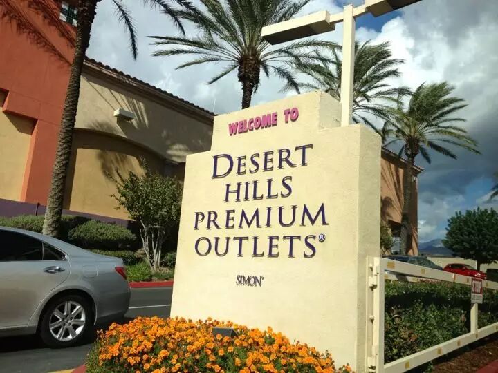沙漠山奥特莱斯(Desert Hills Premium Outlets)是公认的美国西部最好的奥特莱斯购物中心,与纽约附近的Woodbury Common Premium Outlets东西相对,都是世界顶级Outlets。 Desert Hills位于加州西边沙漠中的棕榈泉,从洛杉矶Downtown驱车沿10号公路西向而行,大约需要两个半小时到达,沿途可以把自己设想成当年驰骋美国西部的无畏牛仔,观赏完美国西部的沙漠风光后,要血拼沙漠山奥特莱斯!这里共有一百多折扣商店, 其中有很多是欧洲一线奢侈品的工厂店,包括Burberry 、Armani、 Salvatore Ferragamo 、Coach、 Dolce & Gabbana、 Elie Tahari、 Gucci、 Jimmy Choo等。这些大牌大多都是平民价格,比国内便宜不少,如果能赶上特价,就会有便宜到夸张!
