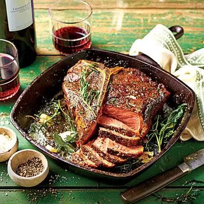 T骨牛排 (T-Bone Steak): 因夹带丁字状骨头得名,取自striploin 与tenderloin中间,由大部分西冷与小部分菲力牛排组合而成。(大厨建议:五至八分熟)