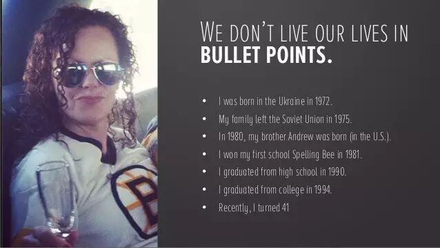 我们绝非生活在下图这样的 Bullet Points中。来介绍一下你自己: