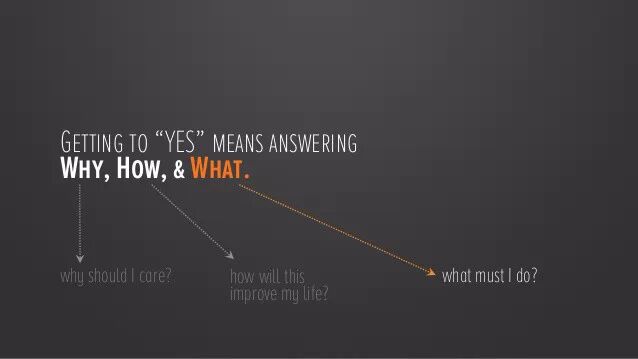 让你的观众Say YES,你需要回答的信息包括:为什么,怎么做,做什么。