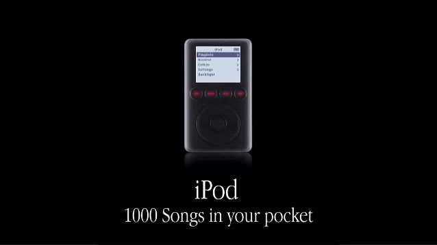 乔布斯在介绍iPod时的广告语是——它是你口袋里的1000首歌!